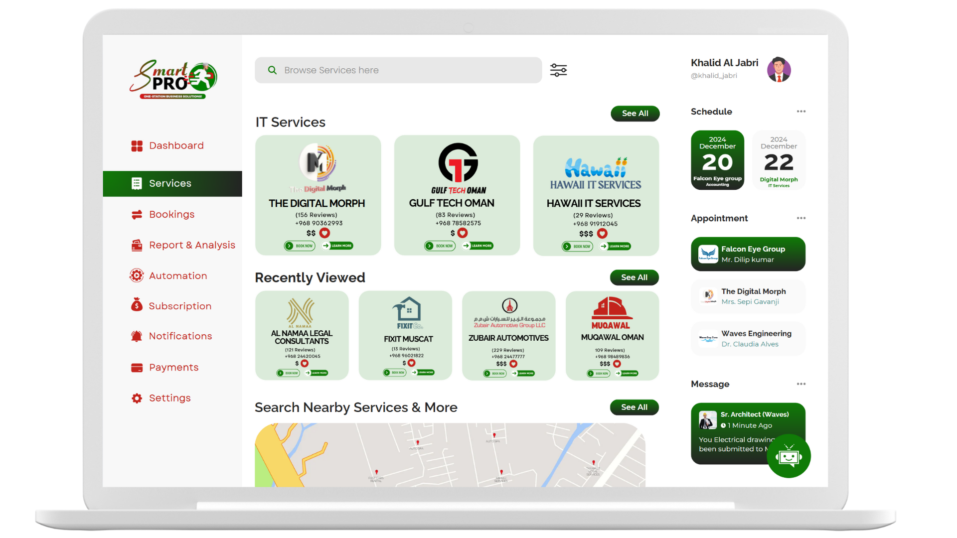Businesses in the GCC face fragmented service discovery, inefficient manual workflows, and a lack of data-driven insights. Smart PRO HUB directly solves these pain points by offering a unified, intelligent, and secure ecosystem: